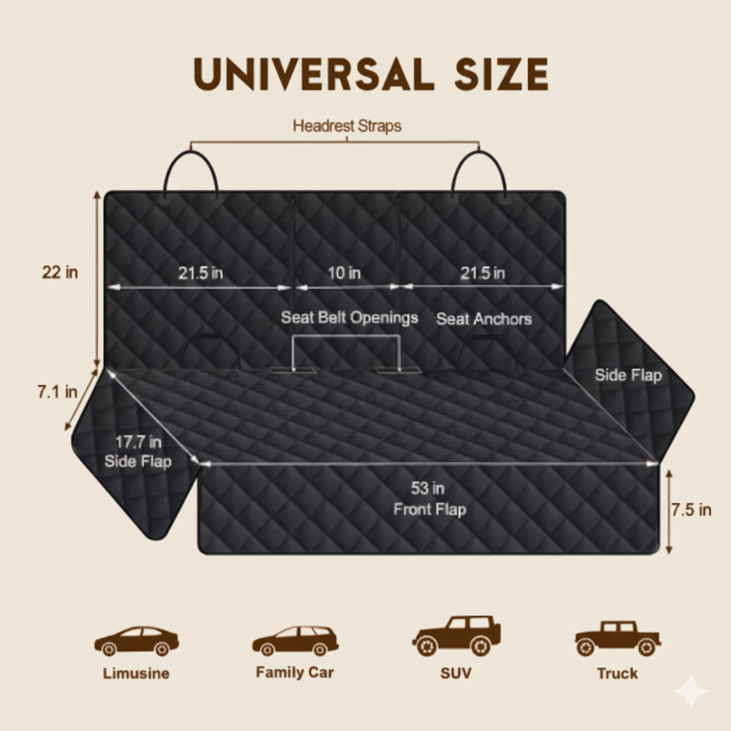 The Voyager SeatGuard™ is strengthened by a 4-layer 600D Oxford fabric, featuring waterproof TPU and a non-slip backing. It has reinforced seams and side flaps that protect seats from claws, mud, and everyday wear.
